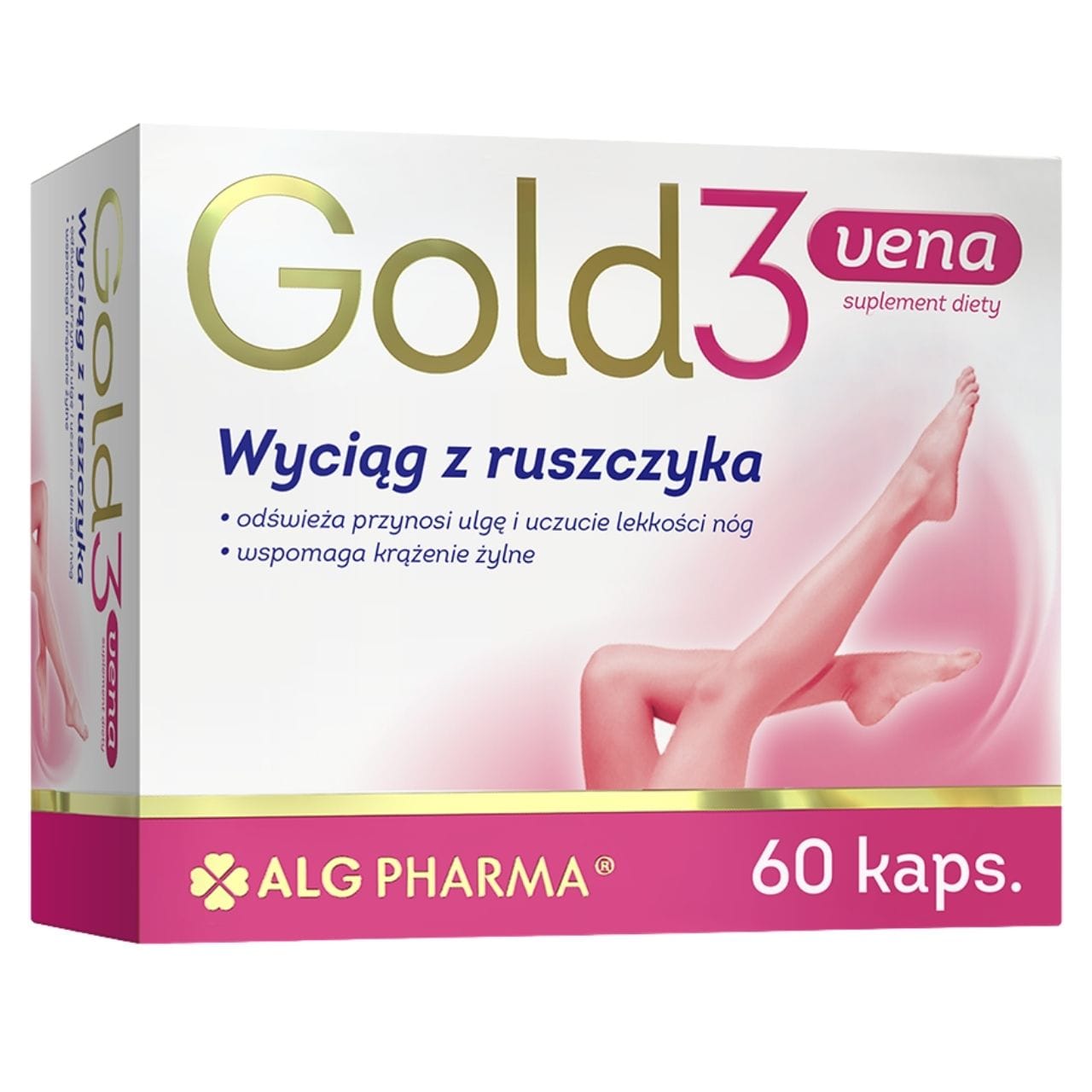 ALG Pharma Gold 3 Vena is a dietary supplement in capsule form containing butcher’s broom extract (150 mg), bitter orange extract with hesperidin (150 mg) and vitamin C (100 mg = 125% RDA). Vitamin C contributes to normal collagen production for the proper functioning of blood vessels. Pack of 60 capsules = 60 days’ supply.