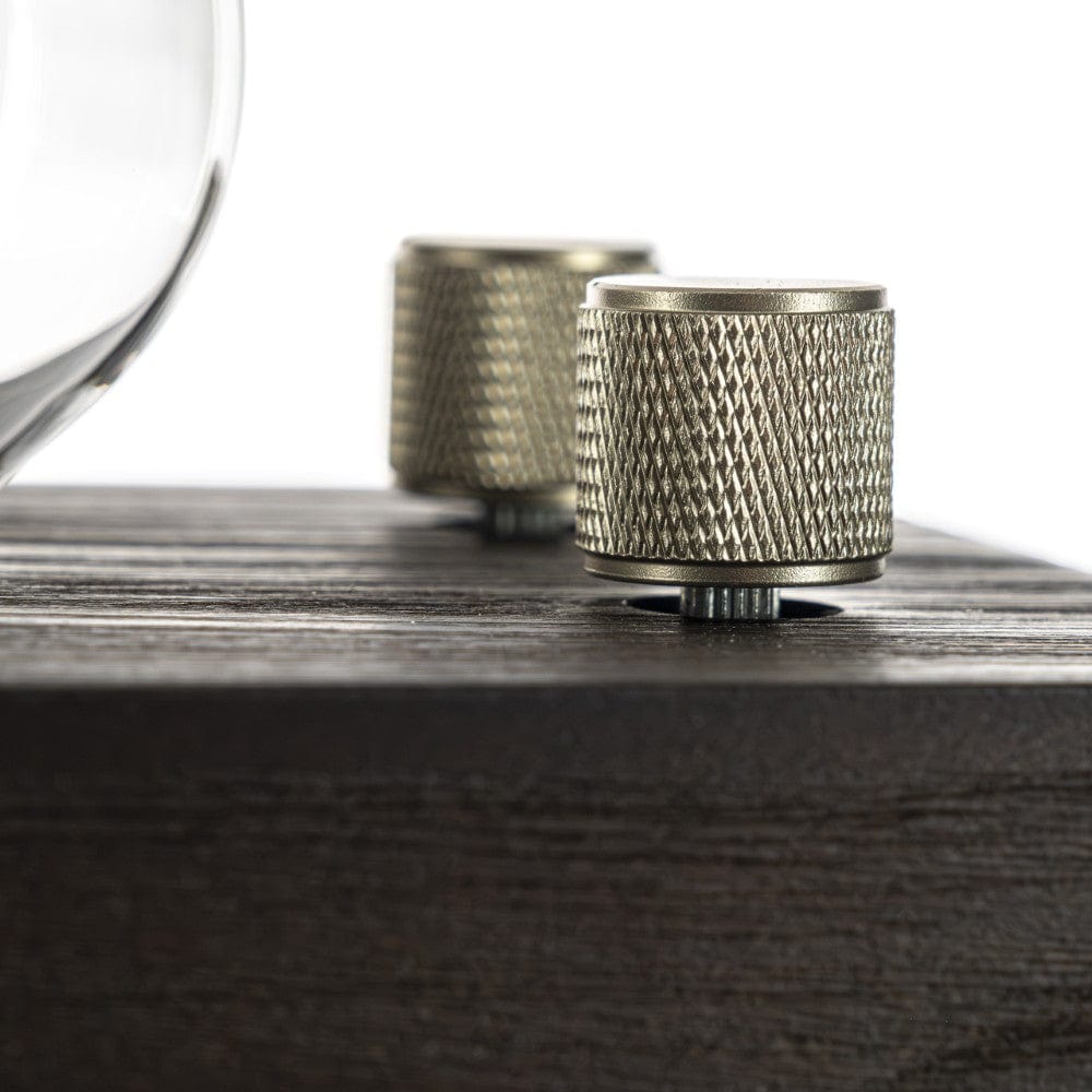 - Männi puidust alus, klaaspudel , pirn ja metallnupud – vastupidavus ja elegants ühes.