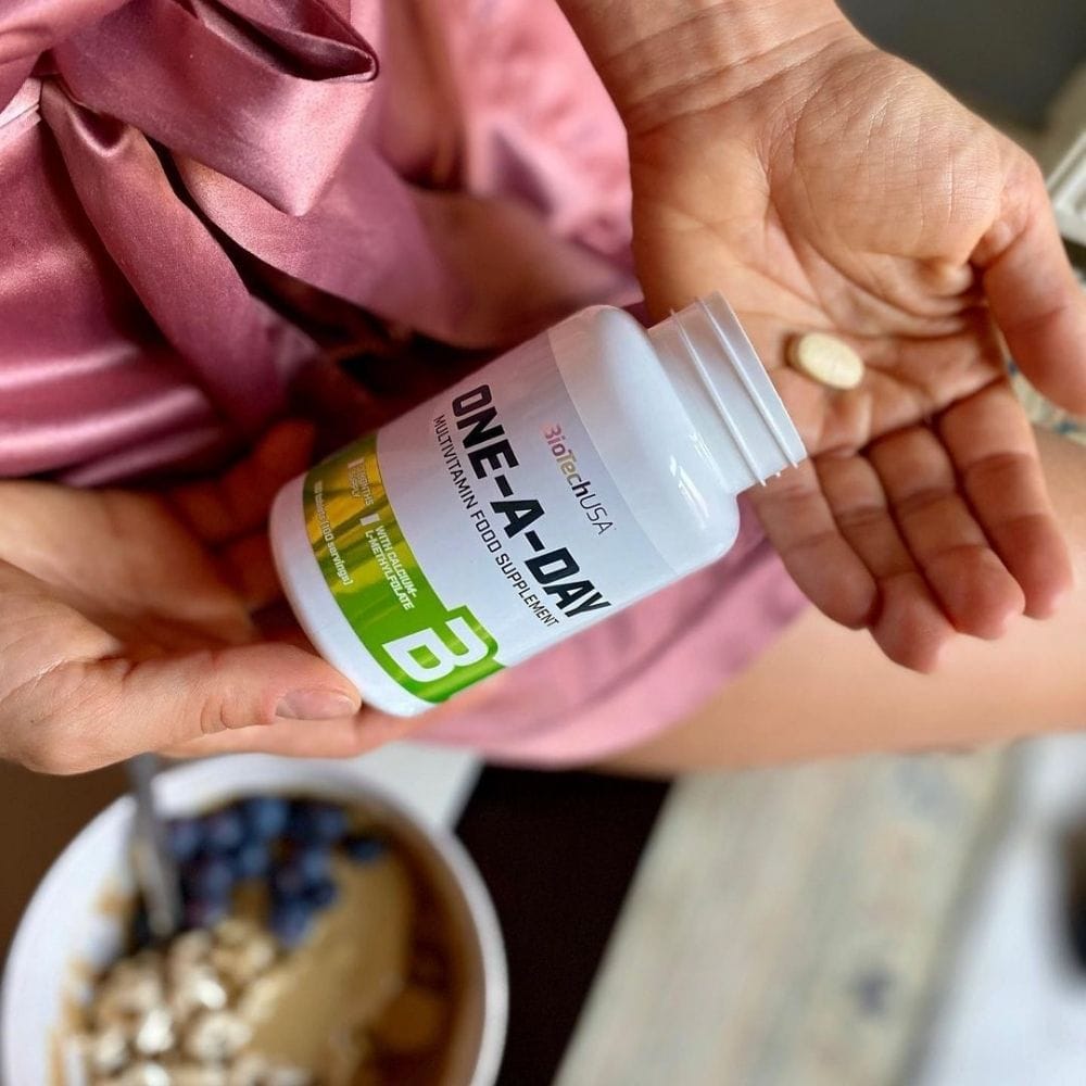 BioTech USA toidulisand One A Day ,, mis sisaldab mitmesuguseid vitamiine ja mineraalaineid ,, aitab kaasa immuunsüsteemi nõuetekohasele toimimisele ,, vähendab väsimust ja kurnatust ning säilitab luude tervise ja lihaste hea toimimise. BioTech USA One A Day toidulisand sobib igapäevaseks kasutamiseks täiskasvanutele ,, eelkõige füüsiliselt aktiivsete ja professionaalselt tegutsevate sportlaste , jaoks, et täiendada nende igapäevast toitumist vitamiinide ja mineraalainetega. Tsink koos rauaga ja vitamiinidega A , C , D toetab immuunsüsteemi nõuetekohast toimimist. Lisaks aitavad , D-vitamiin , tsink , fosfor , magneesium ja mangaan säilitada terved luud ,, samas kui kaltsium , kaalium ja magneesium toetavad lihaste nõuetekohast funktsioneerimist. B-vitamiinid on vajalikud närvisüsteemi nõuetekohaseks toimimiseks, aitavad säilitada normaalset psühholoogilist funktsioneerimist ja vähendavad väsimust ja kurnatust. Toidulisandite faktid: