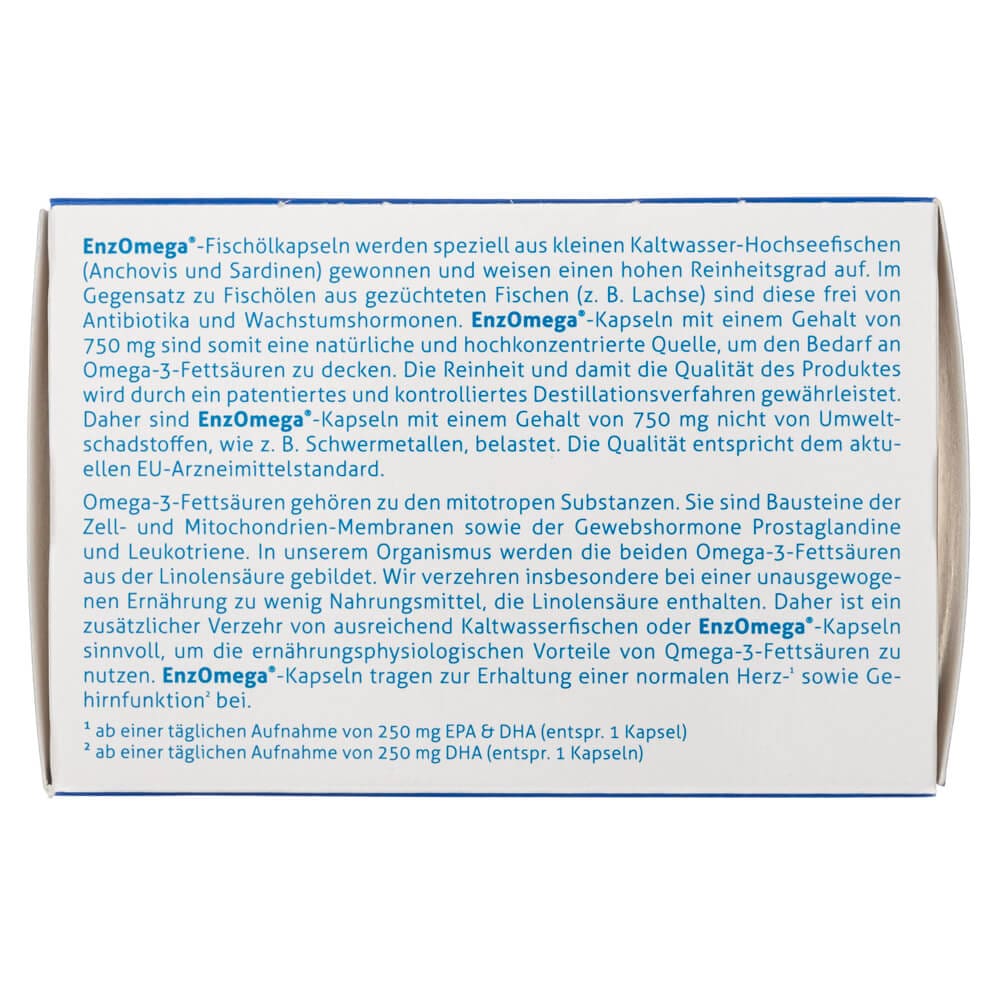 EnzOmega ® MSE Dr.Enzmannilt on toidulisand kapslites, mis sisaldab Omega 3 rasvhappeid suures vahekorras: DHA 220 mg ja EPA 530 mg. Oluliste oomega-3-rasvhapete EPA ja DHA ideaalne (2:1)suhe tagab toote biokeemilise tasakaalu ja kõrgeima tõhususe, toetades seega tõhusalt südametegevust, ajufunktsiooni ja head nägemist.