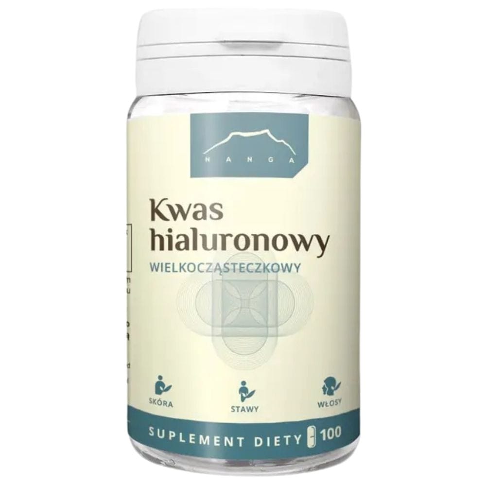 Nanga Large-Molecule Hyaluronic Acid is a dietary supplement in capsule form, without unnecessary additives and fillers. It contains 200 mg of sodium hyaluronate in one capsule, obtained through the fermentation of glucose by Streptococcus zooepidemicus.