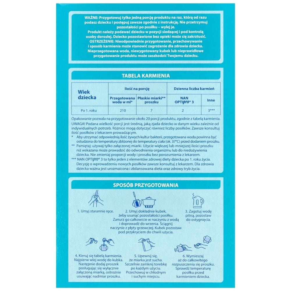 NAN OPTIpro 3 on piimapõhine toode , mis on mõeldud väikelastele. Rikastatud vitamiinide ja mineraalainetega. See ei asenda rinnapiima, vaid on toode , mis on loodud üle 1-aastastele lastele