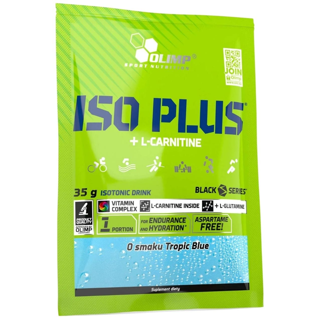Olimp Iso Plus Isotonic with L-carnitine is a dietary supplement in powder form for preparing a carbohydrate-electrolyte drink. The product is intended for athletes participating in endurance sports. Carbohydrate-electrolyte solutions help maintain endurance during prolonged exercise and increase water absorption during physical activity. Each serving (35 g / 500 ml) provides a complex of 12 vitamins at 40% of the RDA, 100 mg of L-carnitine, 385 mg of L-glutamine and electrolytes: sodium, potassium, calcium and magnesium. Contains sweeteners.