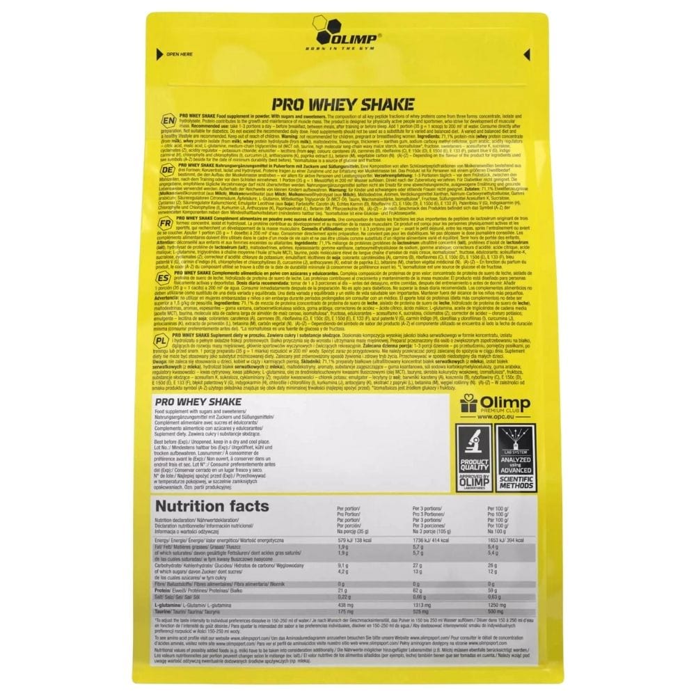 Olimp Pro Whey Shake on pulbriline toidulisand. Valgulisand, mis on mõeldud suurenenud valguvajadusega inimestele, kes püüavad ehitada lihasmassi, peamiselt võistlussportlastele ja harrastajatest treenijatele. See ühendab kolm valgu allikat: vadakuhüdrolüsaat, isolaat ja kontsentraat.