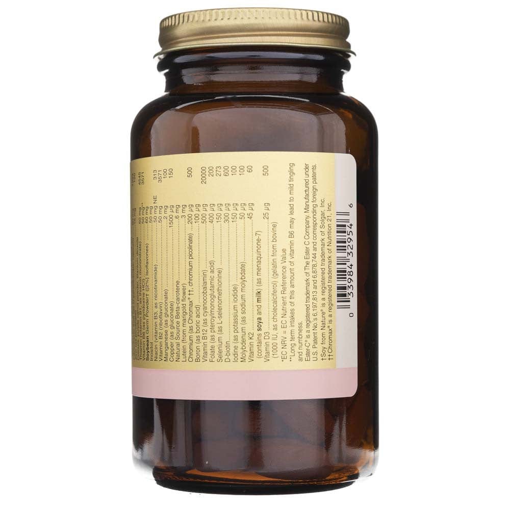 Solgar 's Formula VM Prime for Women on toidulisand tablettides, mis sisaldab spetsiaalset vitamiinide ja mineraalide valemit naistele menopausi ajal ja pärast seda.
