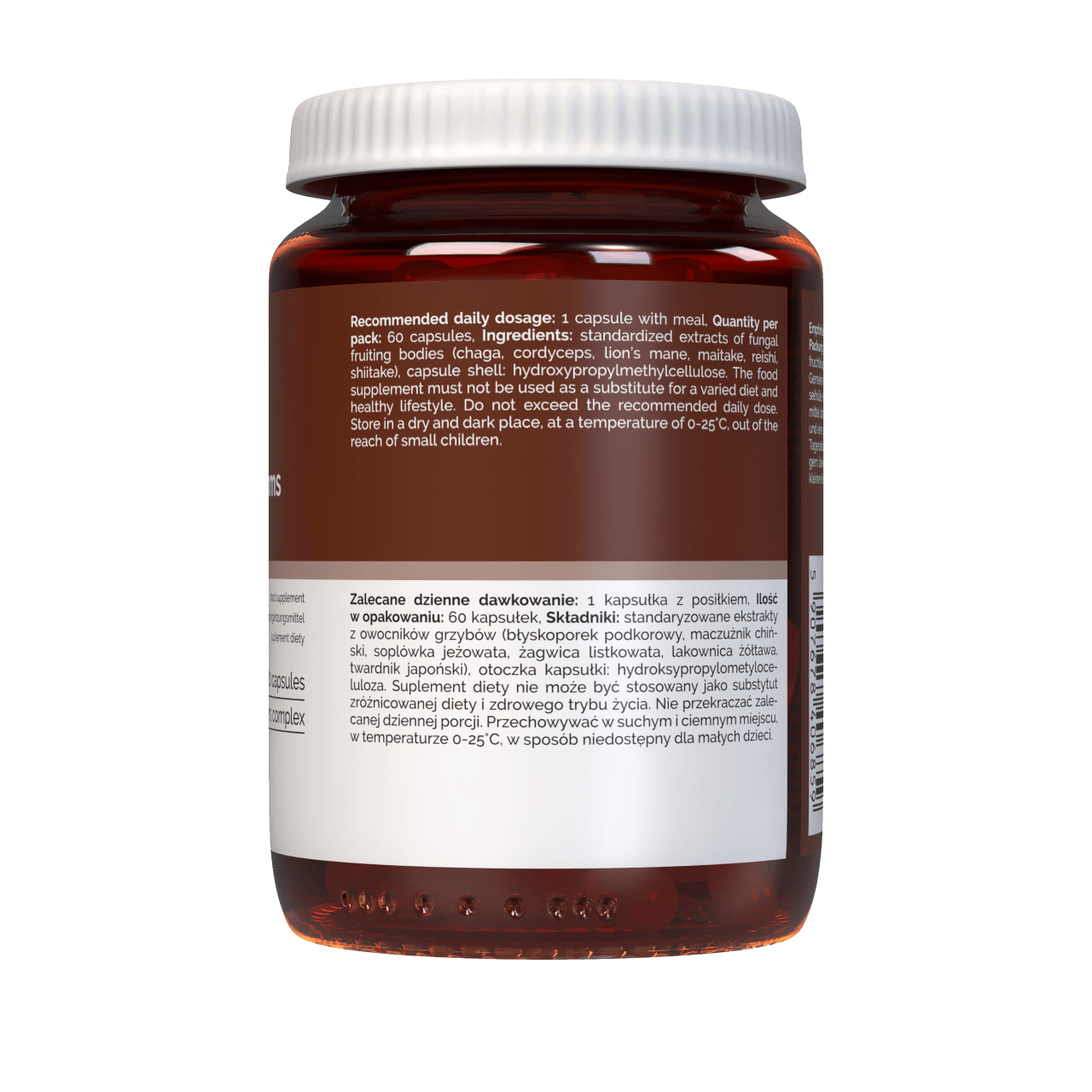 Unikaalne kombinatsioon kuuest elutähtsast seenest, mis on standardiseeritud (aine polüsahhariidide suhtes, mida leidub looduslikult)seentes. Ravimseenedel on tuhandeaastane traditsioon ja neid on pikka aega kasutatud traditsioonilises meditsiinis. Neil on immunostimuleeriv, hepatoprotektiivne, antimikroobne ja antioksüdantne toime.