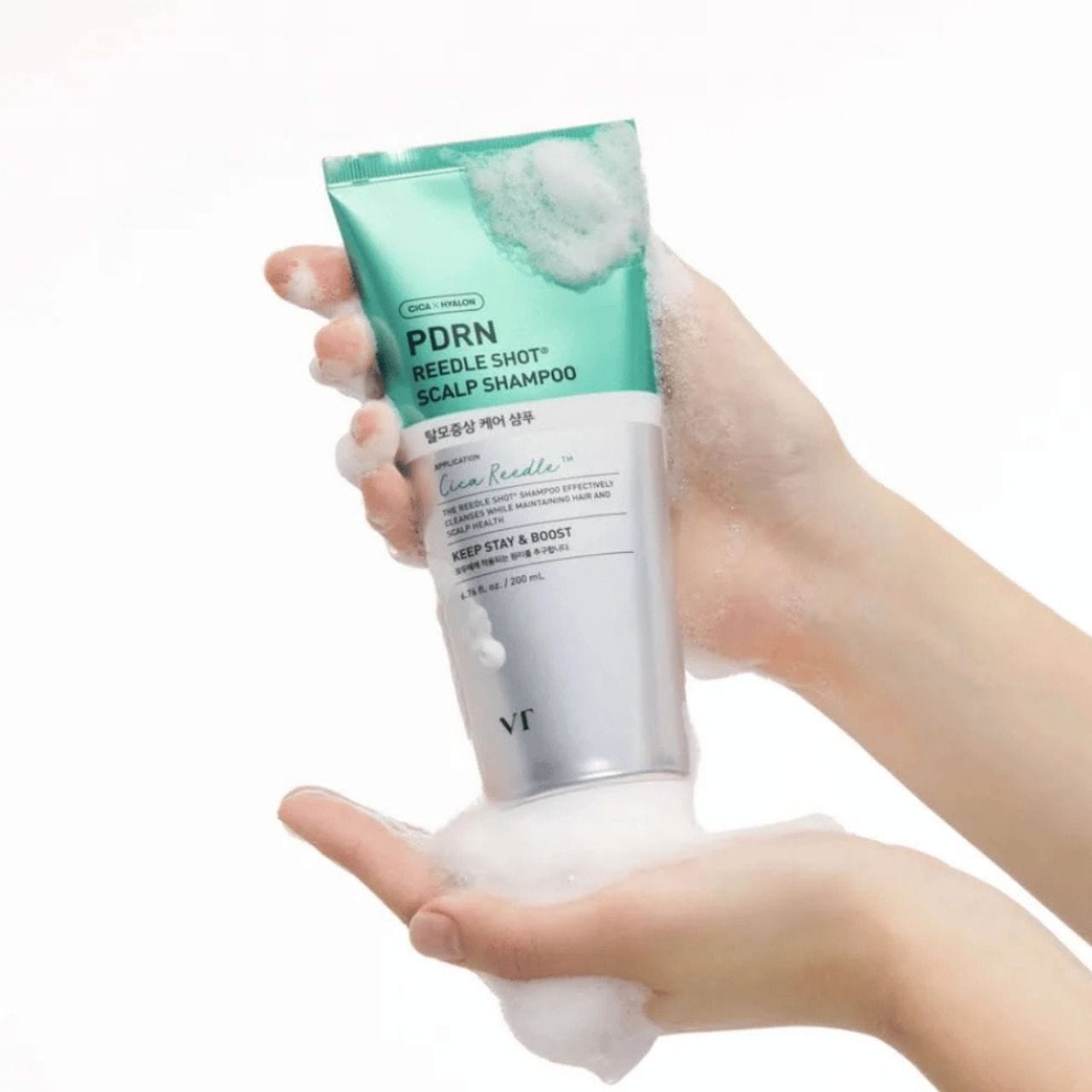 VT Cosmetics PDRN Reedle Shot Scalp Shampoo on täiustatud funktsionaalne šampoon , mis on loodud spetsiaalselt juuste väljalangemise , liigse rasususe ja kõõmaga võitlevatele inimestele. See ühendab innovatiivse CICA Reedle tehnoloogia taimse PDRN-iga, mis on ekstraheeritud looduslikust ženšenist.